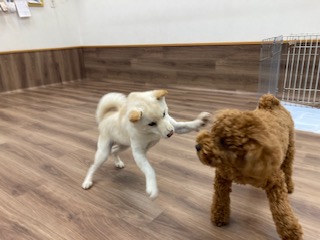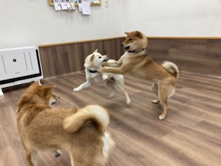 あおくんは、犬たちと遊ぶことが好きなのですぐに馴染んでいますよ!